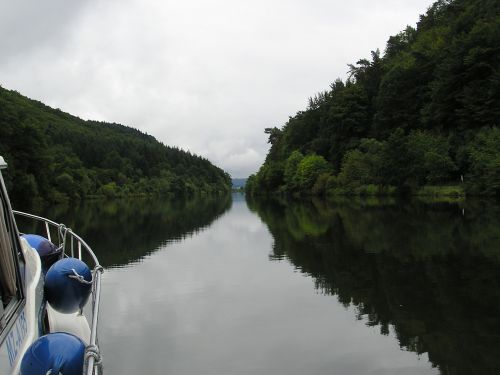 Anhaltender niesel sorgt fuer gute durchfeuchtung der matrosin bei jeder schleusung. Die schoenheit der saar kommt in dem grau-in-grau gar nicht so zur geltung, wie es ihr eigentlich gebuehrt. Dafuer kann man auf dieser etappe sein funkerwissen wieder aufpolieren: mit schleusenwaertern und im schiff-schiff-verkehr mit talfahrern wegen begegnungsverbot in engen kurven.