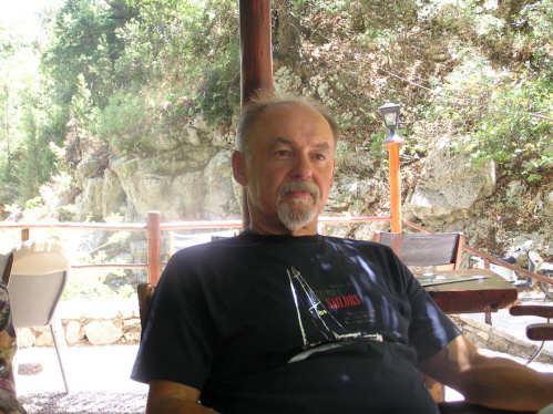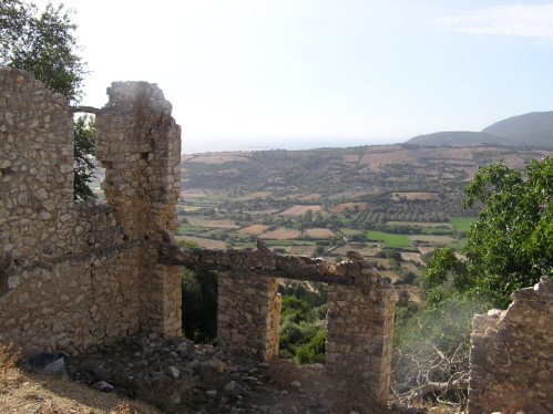 Da selbst das Einholen noch weiterer Wetterberichte aus unterschiedlichen Quellen keine bessere Prognose erbringt, besorgen wir uns 2 Mietwägen und machen das griechische Hinterland unsicher. Wieder mal beweist sich, wie unterschiedlich doch die Eindrücke von See aus und dann im Inneren des Landes selbst sein können. Tief beeindruckt uns die abwechslungsreichen Formationen des Geländes (unerbittlich treiben wir unsere Puntos so manch Hügel rauf), Flora und Fauna (klapperdürre Ziegen, die Straße versperrende Kuhherden, vor Dreck strotzende Wild(Haus-)schweine, lärmende Zikaden, prähistorisch anmutende Riesenwespen, etc.) und die Freundlichkeit der Bevölkerung.
