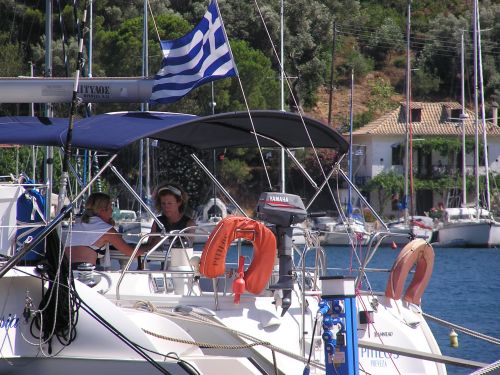 Endlich wieder raus auf’s Meer! Kurz vor Eintreten des berüchtigten Hafenkollers beruhigt sich das Wetter und wir können wieder in See stechen. Mit dem besten aller Kurse –gegenan ohne Seegang bei 4-5 bft – peilen wir zunächst Ithaki an, verkrümeln uns dann aber lieber hinter Atokos, weil Wind und Welle wieder richtig zunehmen.