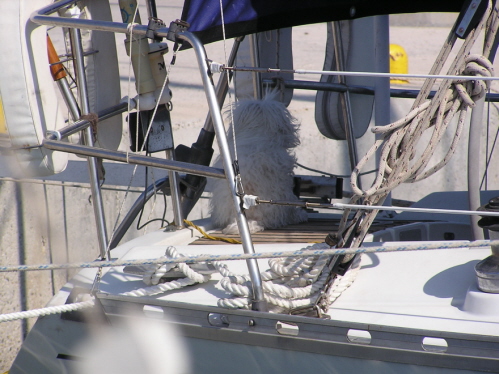 An dieser Stelle seien noch unsere beiden jüngst an Bord genommenen Mitsegler vorgestellt: Franz, der bekanntermaßen selbst die beste Segelstellung noch zu optimieren weiß, sich aber auch als sehr geduldiger Co-Pilot bei Überlandfahrten erweist – er behält selbst dann noch die Ruhe, wenn Cornelia sich zum 3. Mal seinen Instruktionen widersetzt und weiter stur geradeaus fährt. Siggi, unser Power-Senior, einsetzbar in allen Bordbereichen (bis auf Tischdecken), weiß immer ein motivierendes Wort an die vom Captain geschundene Mannschaft zu richten und ist ein Mann der wahrlich großen Worte „Nur, wer die Sehnsucht kennt, weiß, wie ich leide!“.